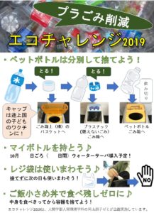 人間環境学科の学生が『プラごみ削減・エコチャレンジ2019』を実施しています